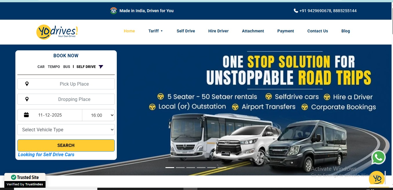Self drive and with driver cars, tempo and bus services starting from Hyderabad to anywhere..